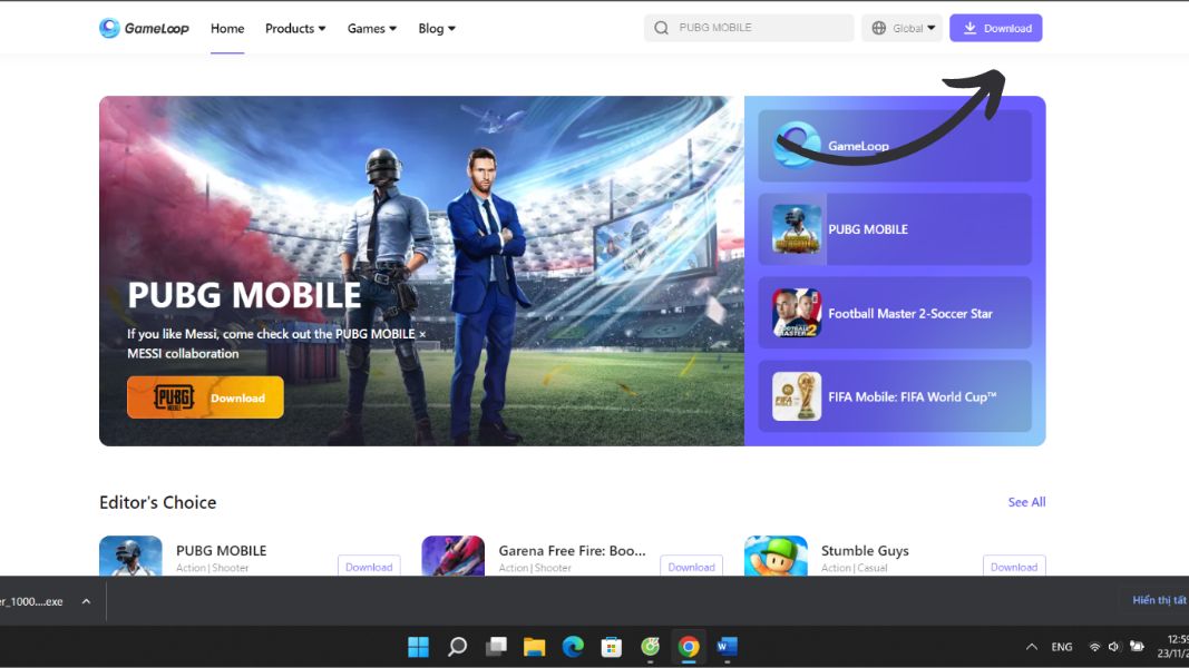Trước hết bạn phải có phần mềm Tencent Gaming Buddy trên máy. Nếu bạn chưa có thì có thể lên mạng tìm kiếm cách tải phần mềm Tencent Gaming Buddy. Lời khuyên là nên vào trang chủ để có thể tải phiên bản mới nhất. Địa chỉ trang web là Tencent-gaming-buddy.en. Sau đó bấm chọn Download nhé