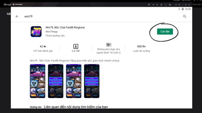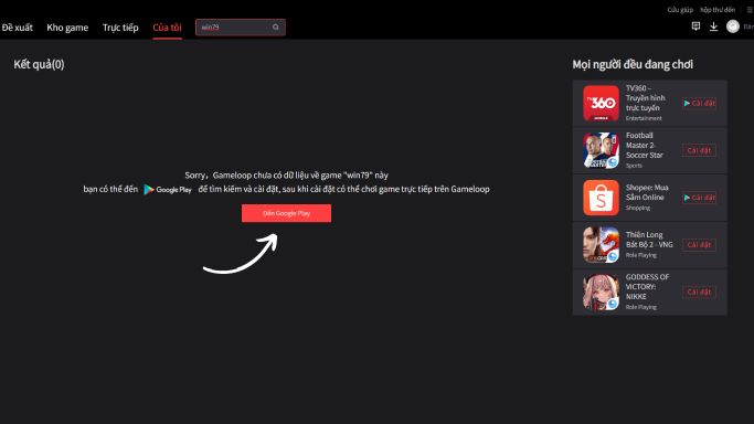 Sau khi cài đặt CHPlay thì hãy tìm trên thanh tìm kiếm app Win79